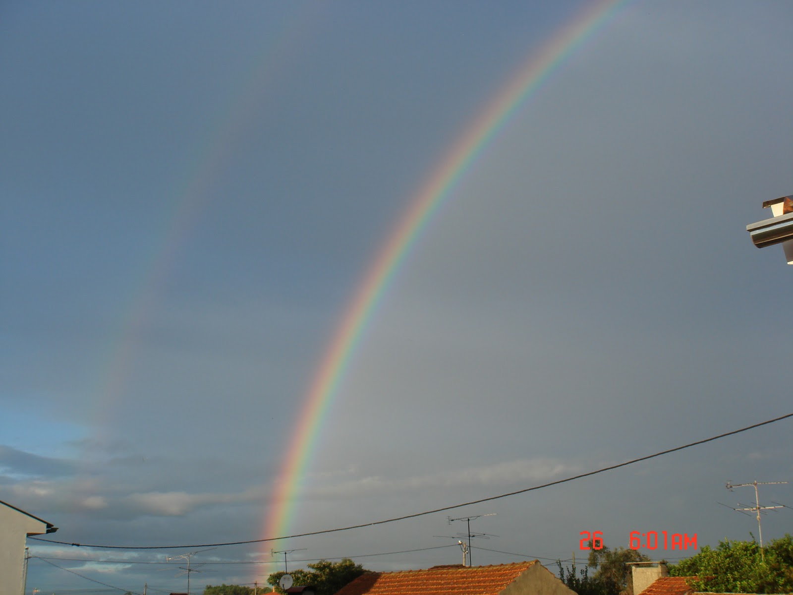 O arco-íris é um fenómeno óptico e meteorológico acontece sempre que há chuva e sol ao mesmo tempo e está localizado no lado oposto ao do sol. Este fenómeno desenvolve-se pela decomposição da luz solar branca em cores que vão do vermelho até ao violeta, pelas gotas de água.